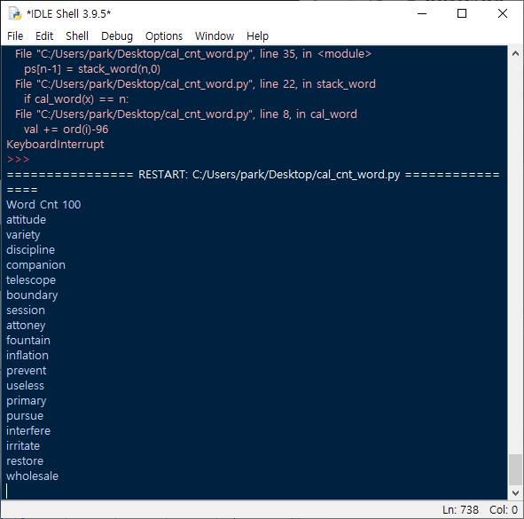 옆에 계셨던 분이 100점 짜리 단어가 attitude 만 있을까? 하는 질문을 주셨고, 나도 갑자기 궁금해져서 파이썬으로 프로그램을 짜보게 되었다.